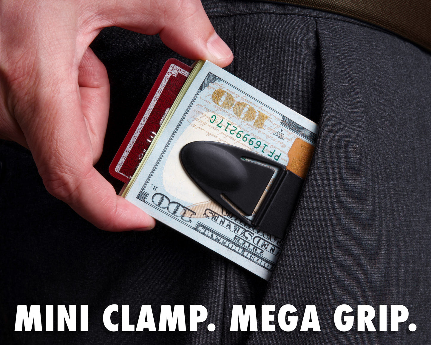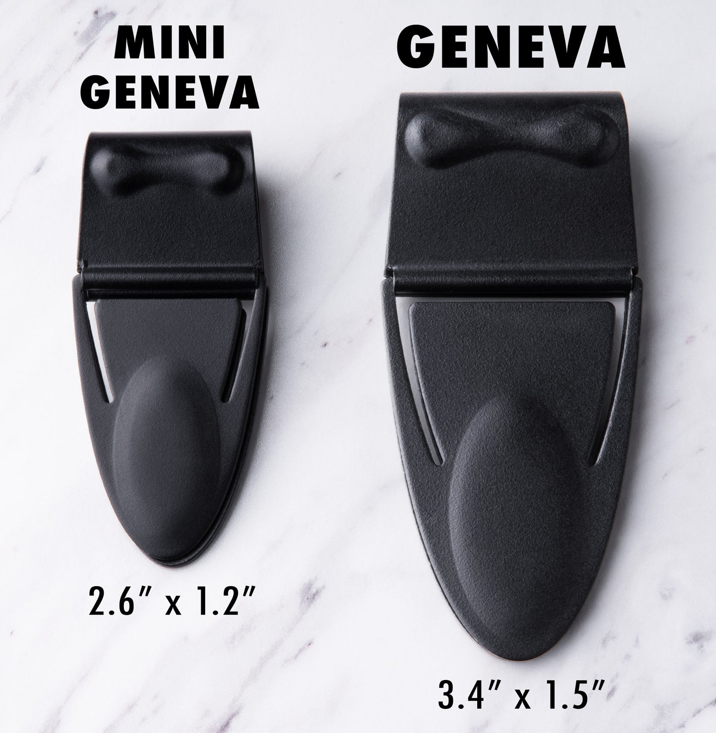 The Mini Geneva Black Matte MoneyClamp® presents an innovative solution to the age-old problem of bulky, disorganized wallets and money clips. Crafted from a revolutionary material known as MemoryFlex Steel, this money clip redefines durability and flexibility. It's engineered to be ten times more pliant than traditional steel, allowing it to effortlessly accommodate a substantial number of bills and cards without losing its original shape.