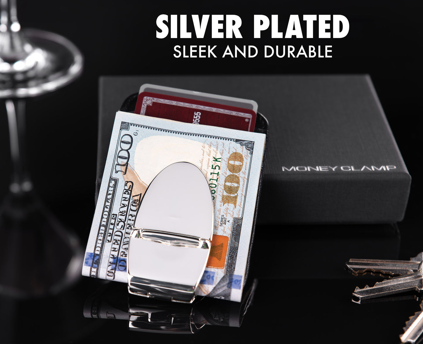 The Milan Silver MoneyClamp® with Black Leather Wallet is the perfect combination of form and function. Its durable construction, advanced features, and timeless design make it a must-have accessory for the modern individual. And with the MoneyClamp®'s Forever Warranty, you can be confident that your investment is protected for years to come.